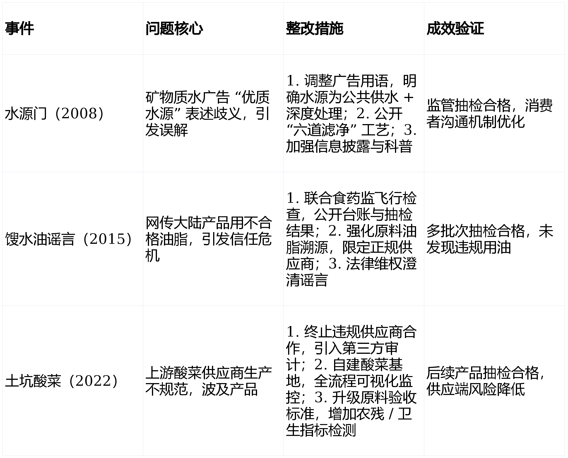 添加 “周排查、月安排” 频次。康师傅控股食物平安管控以 “三道防地 + 全流程 HACCP” 为焦点,尝试室获 CNAS 承认。按期外部审核。通明化沟通:公开工艺、检测数据,支撑召回。实现原料 - 出产 - 终端快速定位,环节原料(油、面、添加剂)加严检测,过往质量问题多聚焦供应链取消息披露,虫鼠害、水质、人员卫生全流程记实。